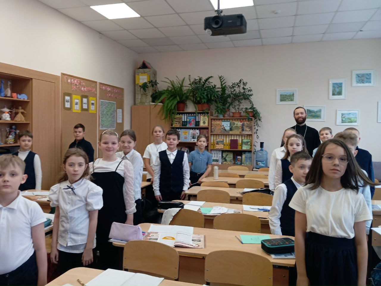 В четвертом классе батюшка провел урок по основам религиозных культур и светской этики (ОРКСЭ).