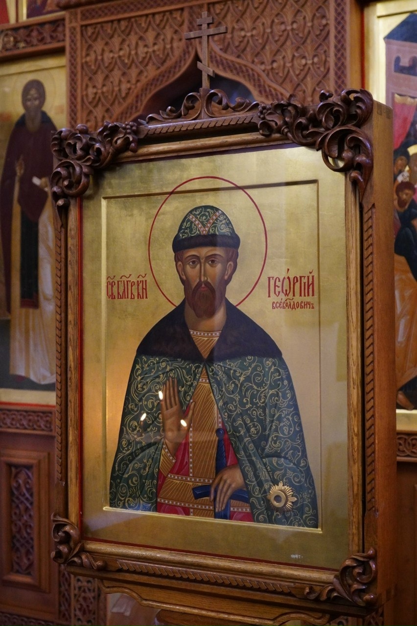 Святы́й благове́рный кня́же Геóргие, моли́ Бо́га о на́с