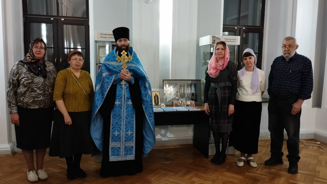 Это был уже второй молебен в текущем году здесь. Вместе со священником молились сотрудники и читатели библиотеки. Среди них был нижегородский издатель и краевед Александр Николаевич Рябов.