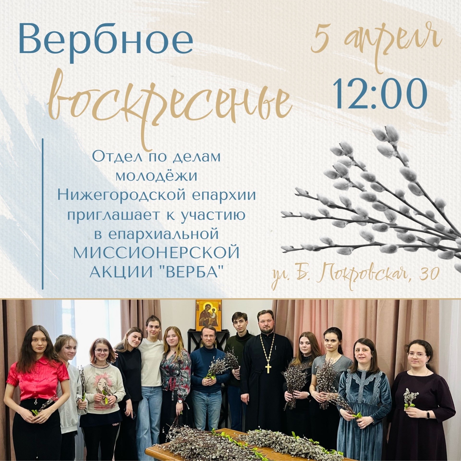 5 апреля в 12.00 приглашаем принять участие в епархиальной миссионерской акции «ВЕРБА».